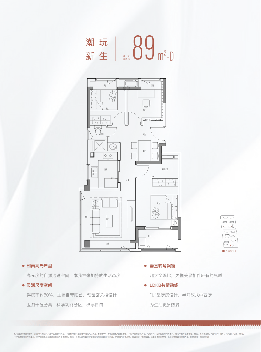 80%左右的得房率在上海新房市场上是比较罕见的,大部分的新房得房率都在73%左右,甚至有些新房得房率还不足70%。这个项目能把89m²的户型得房率做到80%左右,切实为刚需购房者考虑。