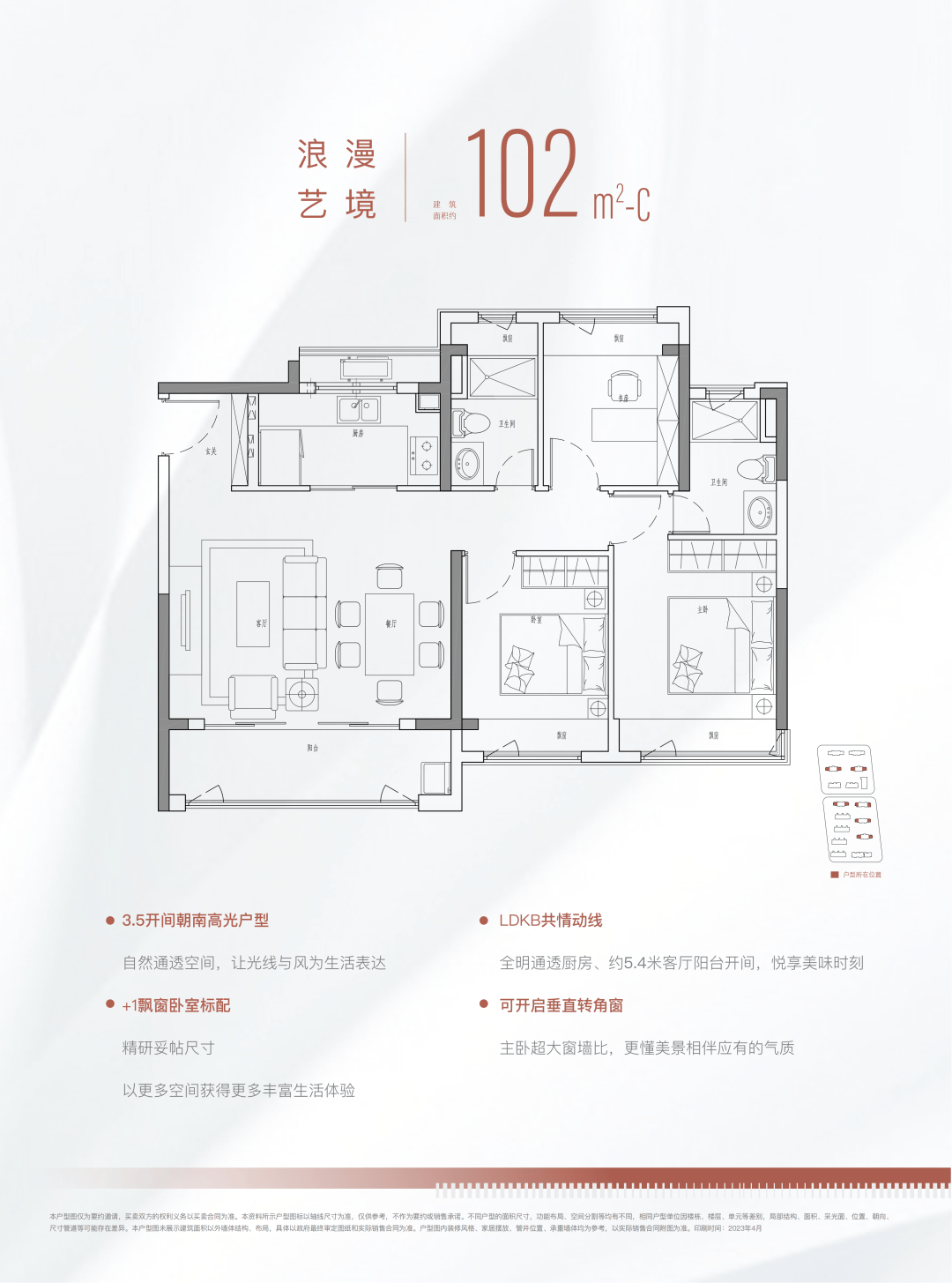金融街美兰金悦府这次的三房分别做了建面约89m²和102m²的两种户型,各有特色。