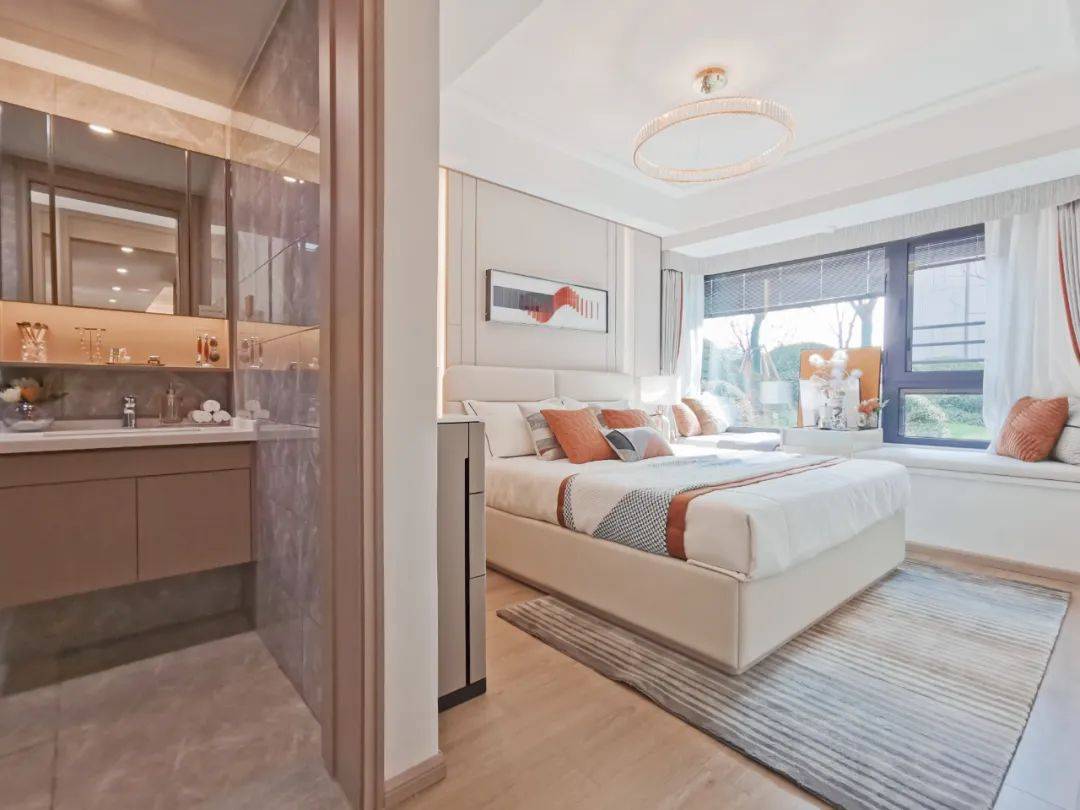 这个户型的主卧设计真的无可挑剔,步入式衣柜配上大面积卫生间,舒适度不亚于豪宅套房。样板间实拍图