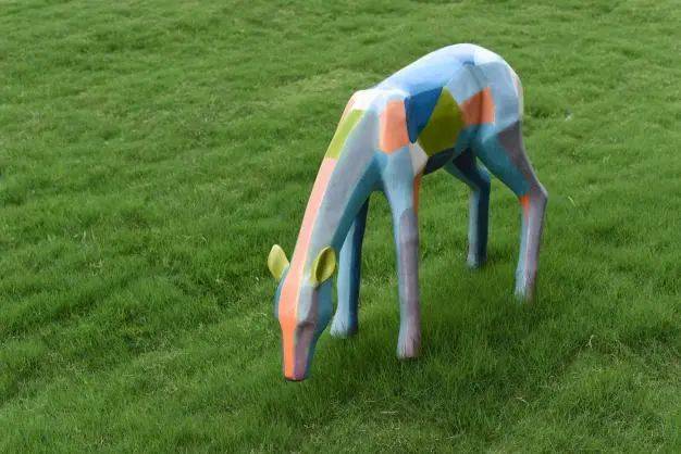彩色的小鹿雕塑装饰碧绿的草地,自然和童趣融为一体。在草地上阅读、家庭嬉戏,不出小区就可以亲近自然,随时随地享受户外时光。
